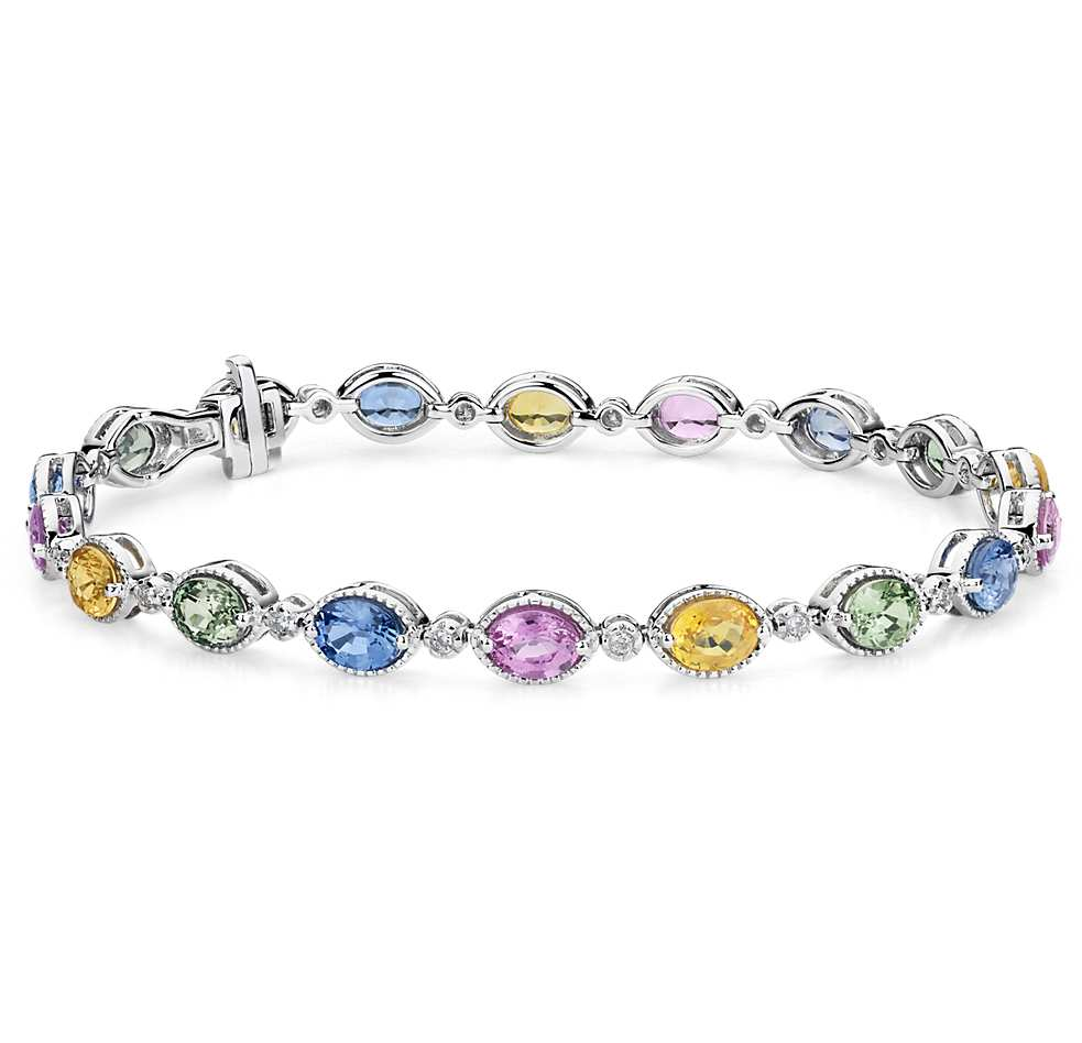 Categories: 14K, Bracelets, Diamond, Gemstone, Karat, Metal Type, Multi Sapphires, White Gold