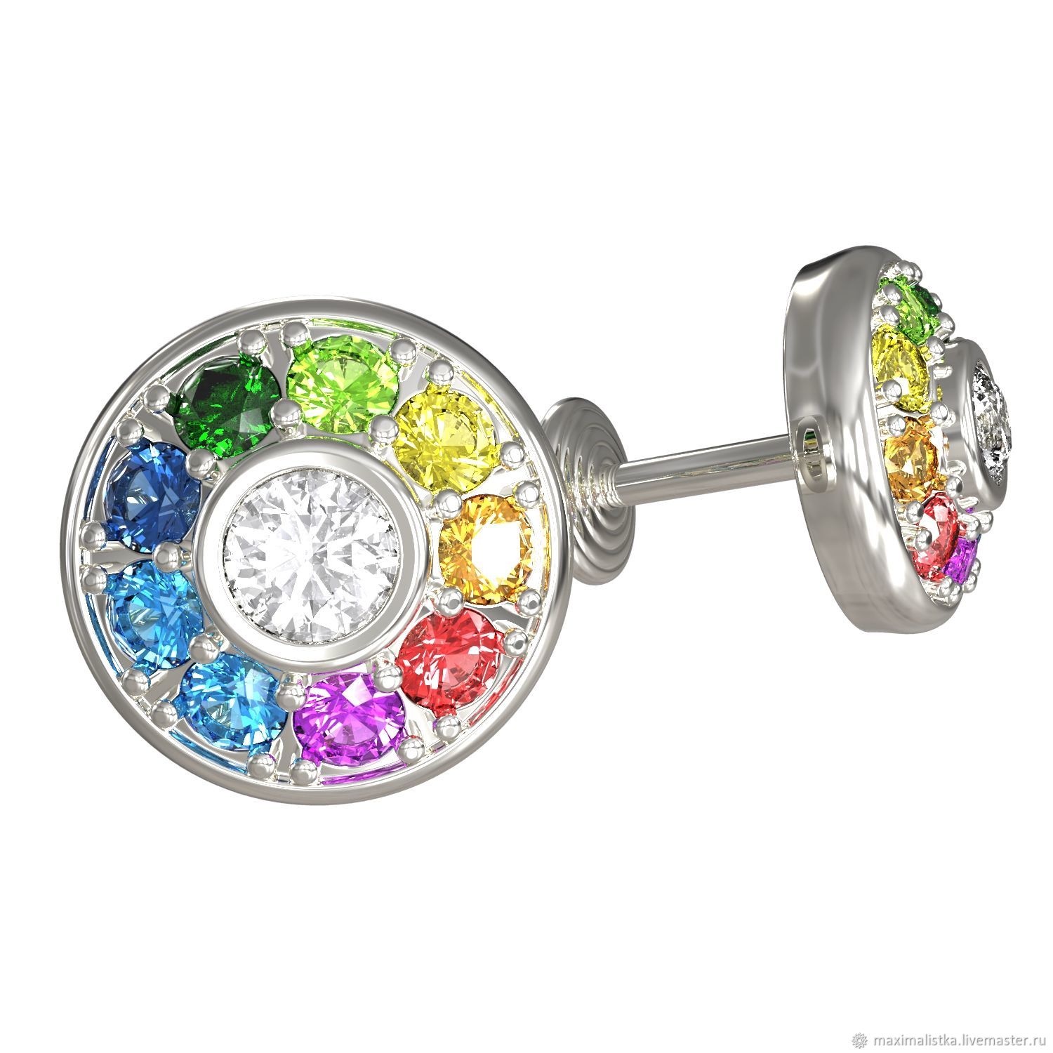 These sophisticated 14 karat white gold earrings feature a stunning mix of multi-colored sapphires, complemented by sparkling diamonds. Designed to add vibrant elegance and timeless beauty to any jewelry collection.