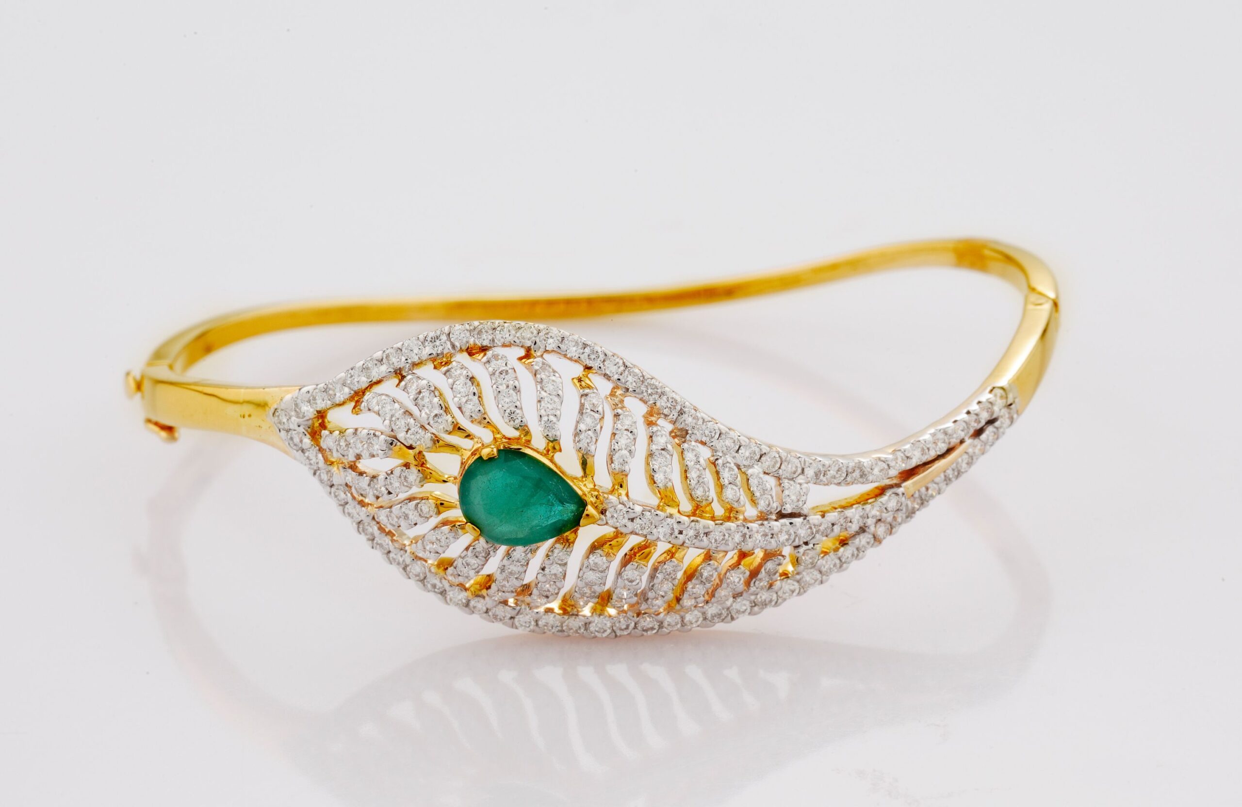 Yellow Gold Bangle with Emerald & Diamonds